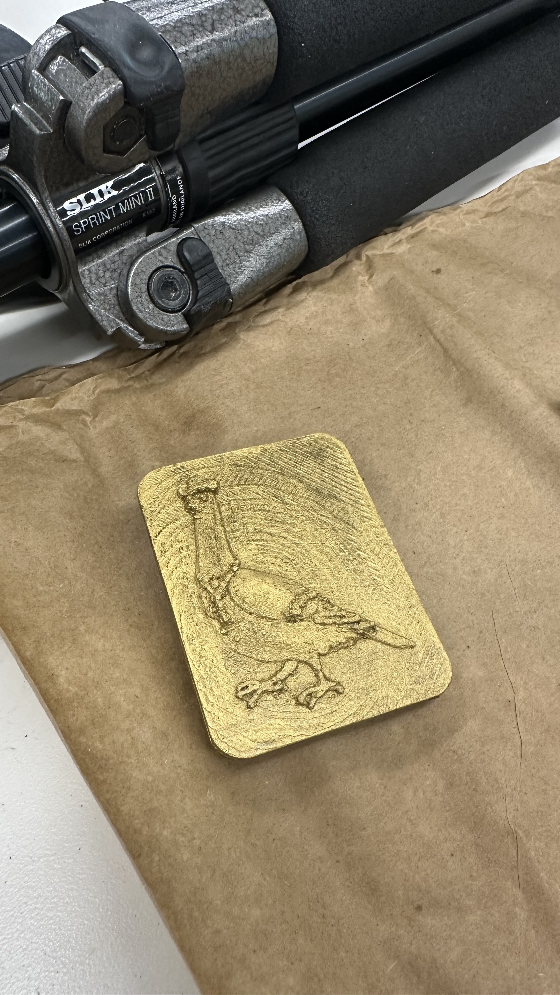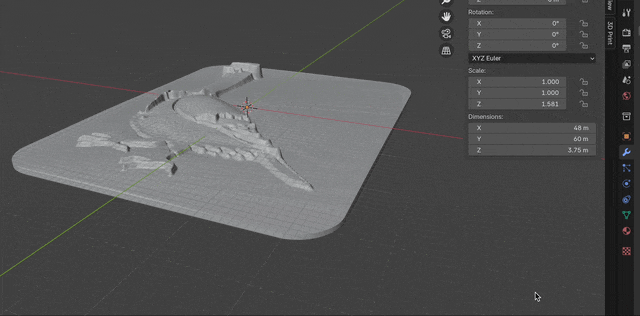 I then used Extrude in blender to give the pigeon's displaced surface some volume, used a boolean difference to cut a straigh flat bottom to it, and created a corner-cutting cube in blender to make each of the pigeon faceplate's corners match the filleting of the buckle lid from fusion. This was fairly manual and I'm sure there exists a better way to do it, but you have to go with what you've got!