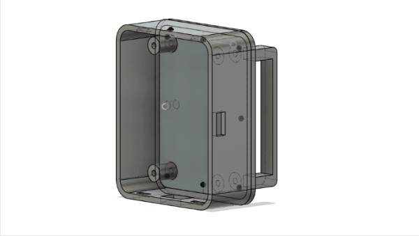 I designed a brand new housing in Fusion. This one needed to be comfortable enough to wear all day without scratching you -- which required filleting the corners. It also needed to be fully undoable -- I wanted to be able to take it apart and replace things later, instead of rely on glue.